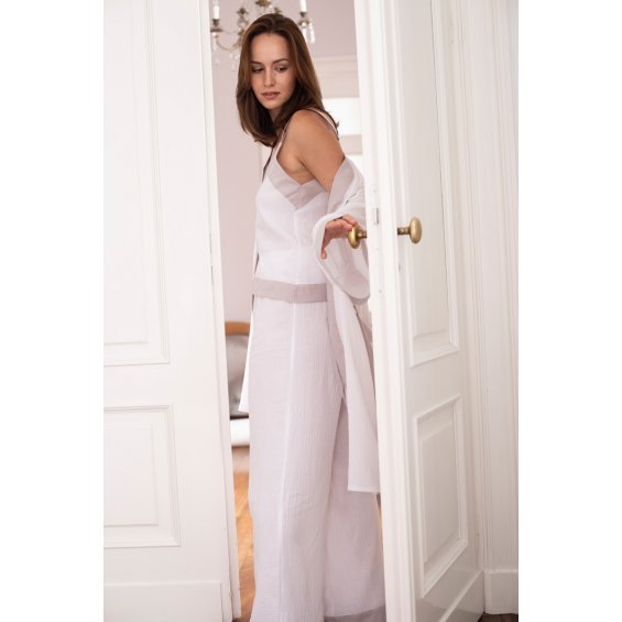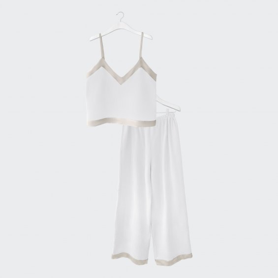 Muslin top and trousers set white and beige