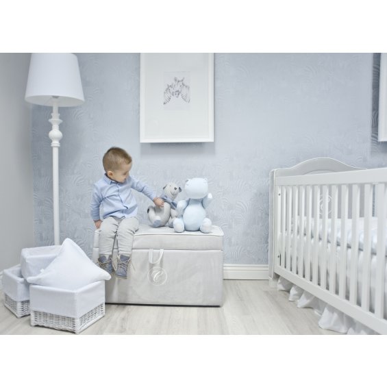 Baby blue lampshade finished with white border and elegant three-dimensional emblem. Our floor lamp is perfect as the additional source of warm and non intense light.