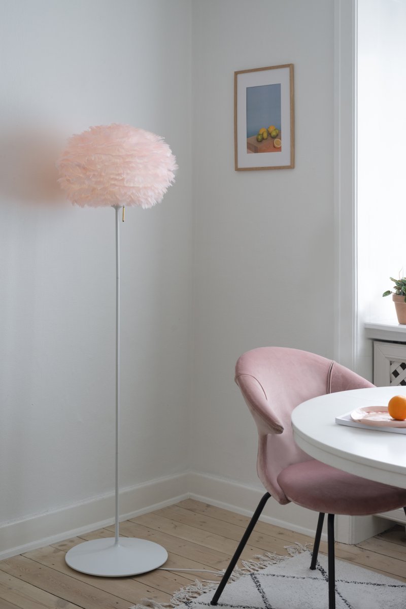 A white lamp base that fits all sizes of goose feather lampshades: small, medium and large. Available also in gold.