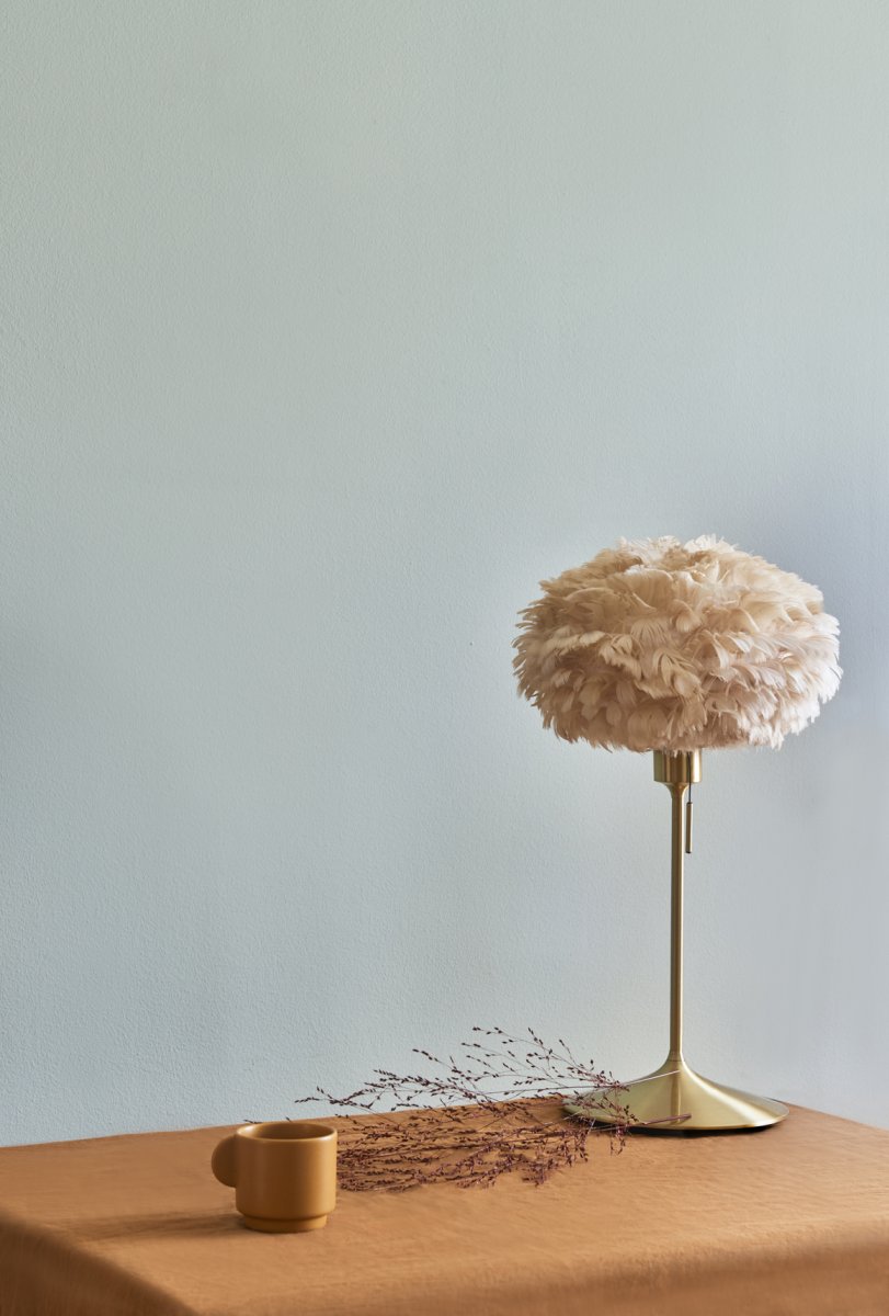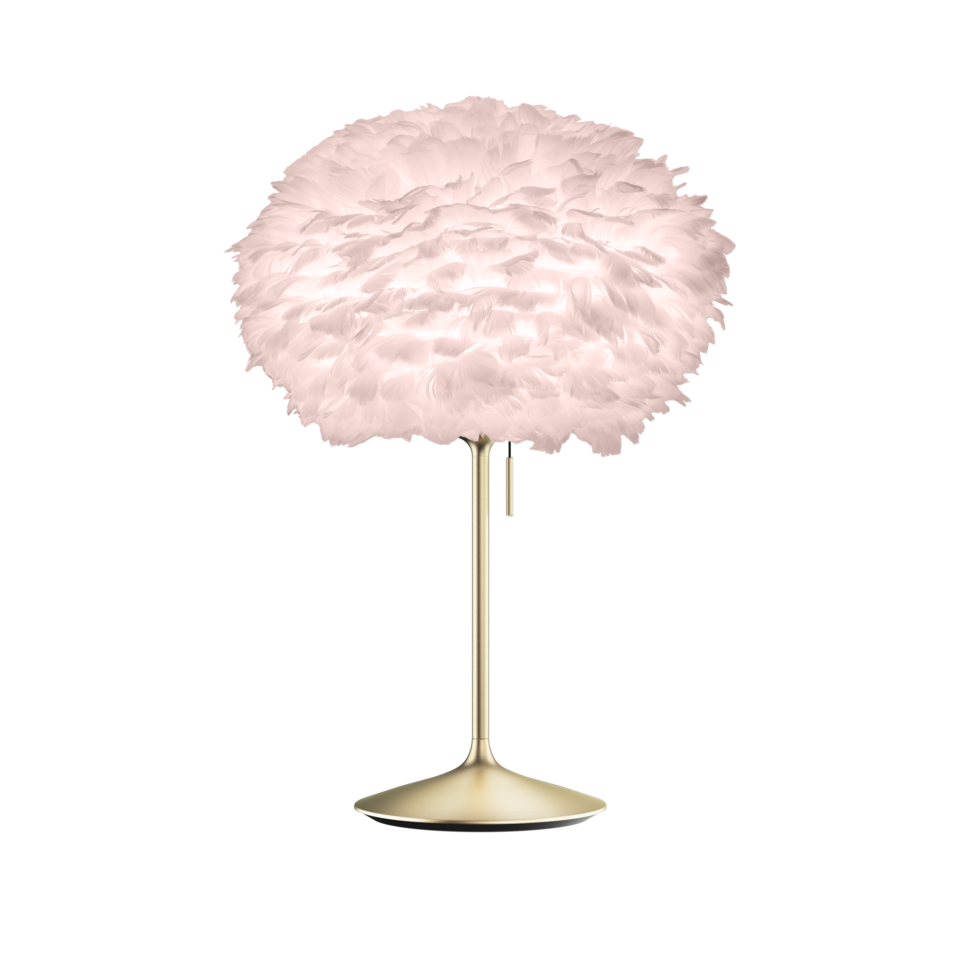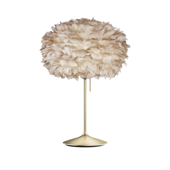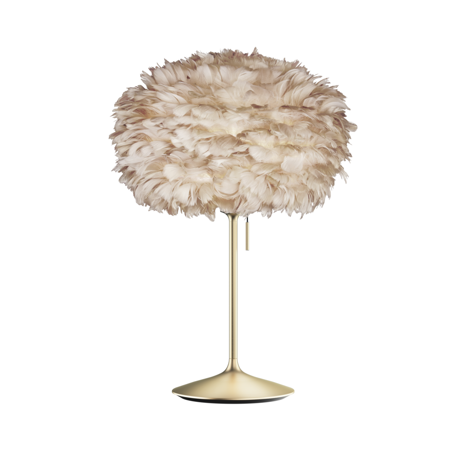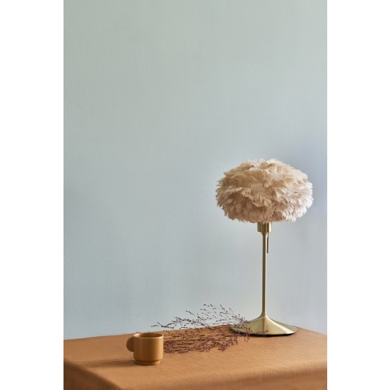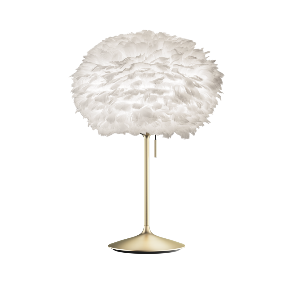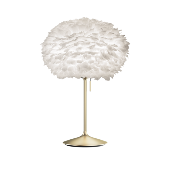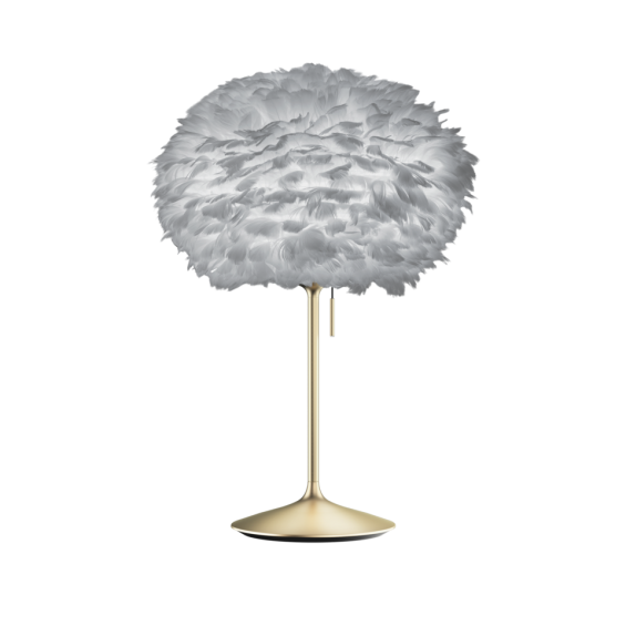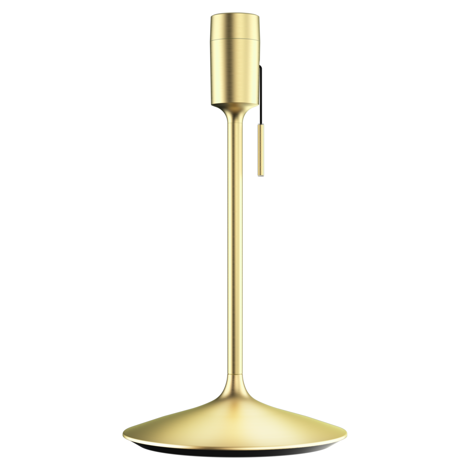 A gold lamp base that fits all sizes of goose feather lampshades: small, medium and large. The stand has a hidden, integral USB-port so you can charge your phone or tablet, even when the light is turned off. Available also in white.