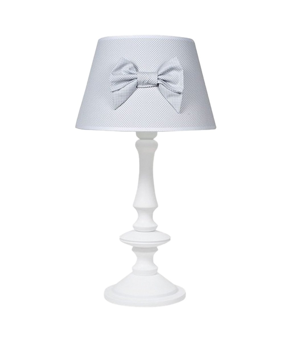 A typical design for girls - a light grey lampshade with a lovely decorative bow. Our lamp is perfect as the additional source of warm and non intense light and can be placed on a dresser or a desk.