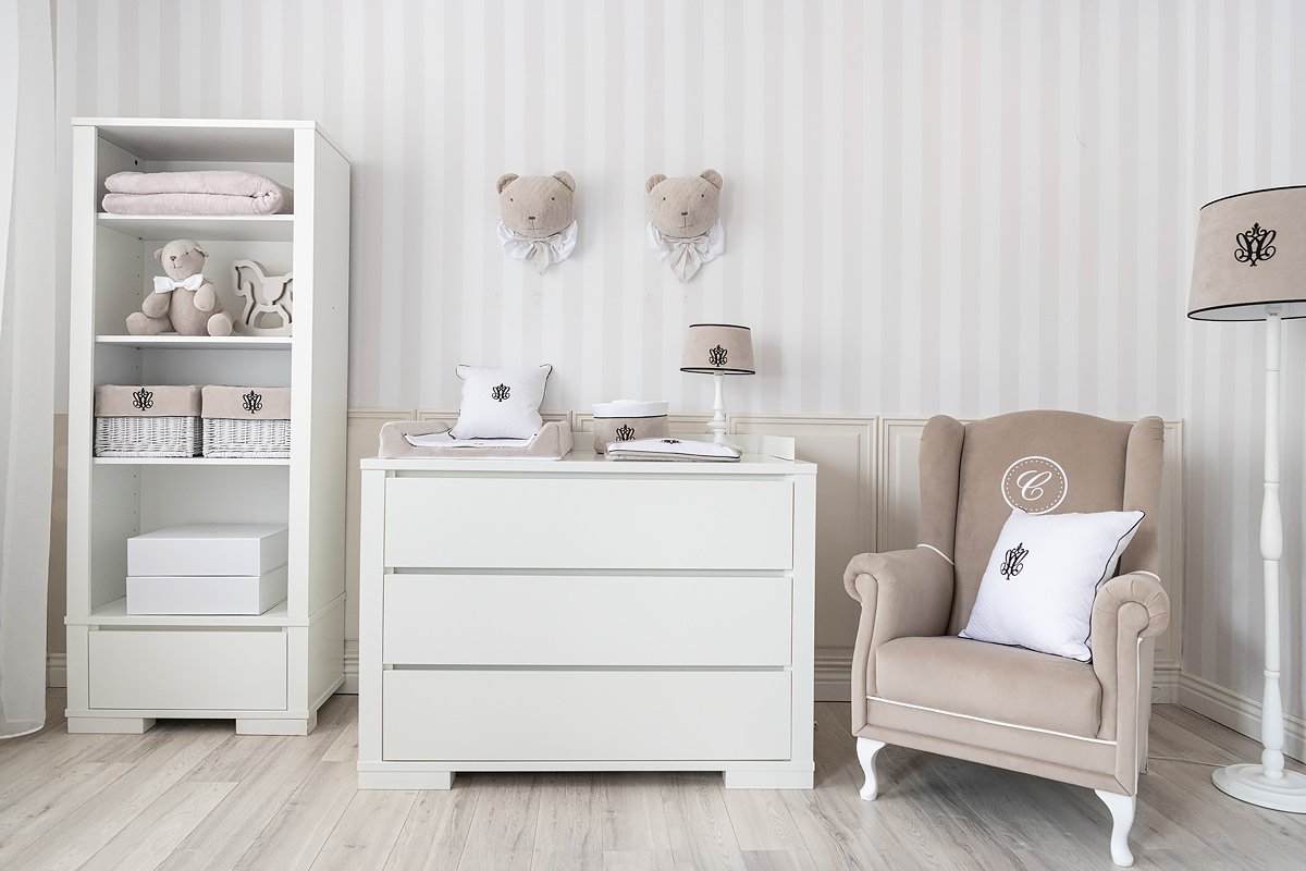 Beautiful lamp with beige velour shade. Decorated with an elegant, black company emblem and decorative tape. This lamp works well in every child's room - as a bedside lamp, for a dresser or window.