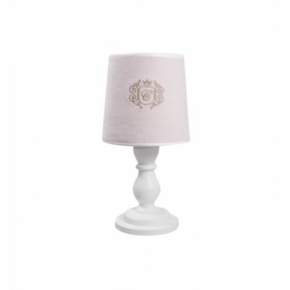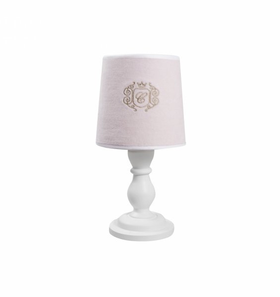 Lampshade in a delicate shade of powder pink. Decorated with the elegant gold emblem of the company. Fits a lantern, wall lamp and three-armed chandelier.