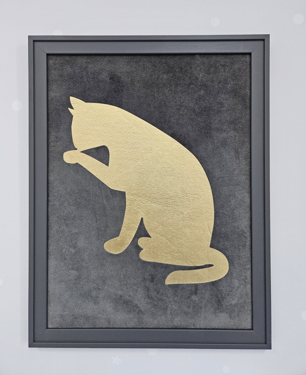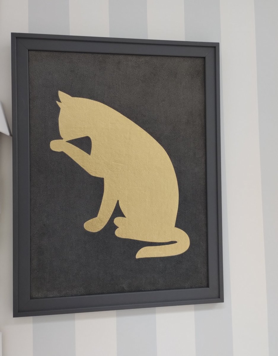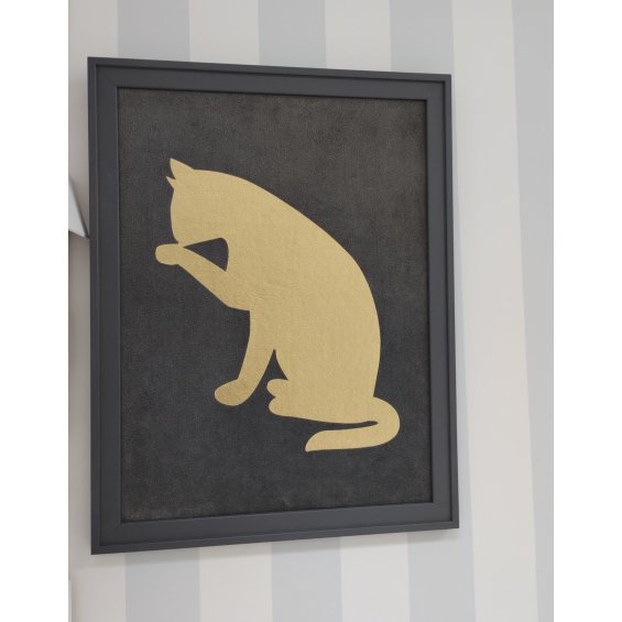 Grey painting with golden cat - outlet