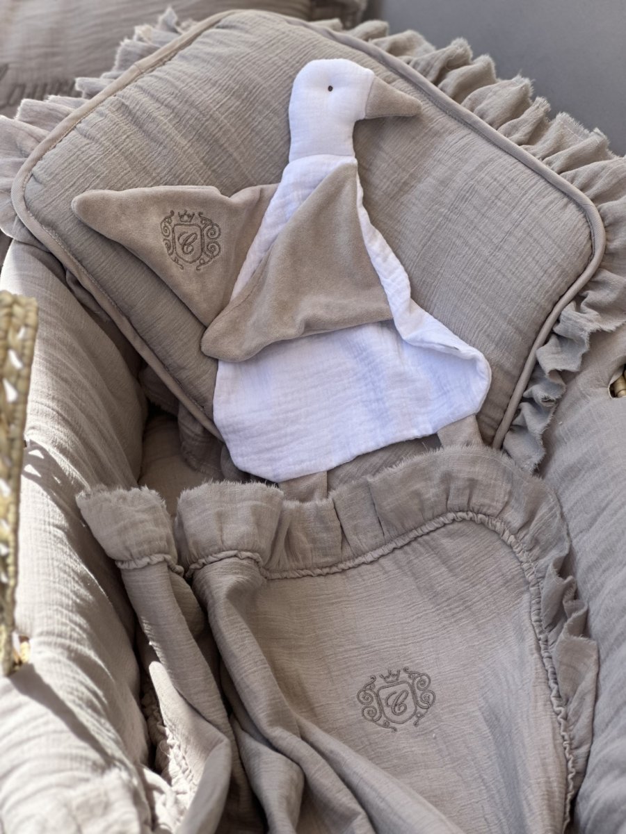 A charming sleeping goose - the baby's first cuddly toy that will help him fall asleep. Dou dou "soaked" with the scent of mum gives the baby a sense of security and closeness.