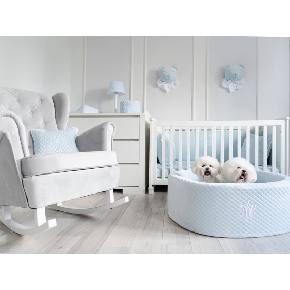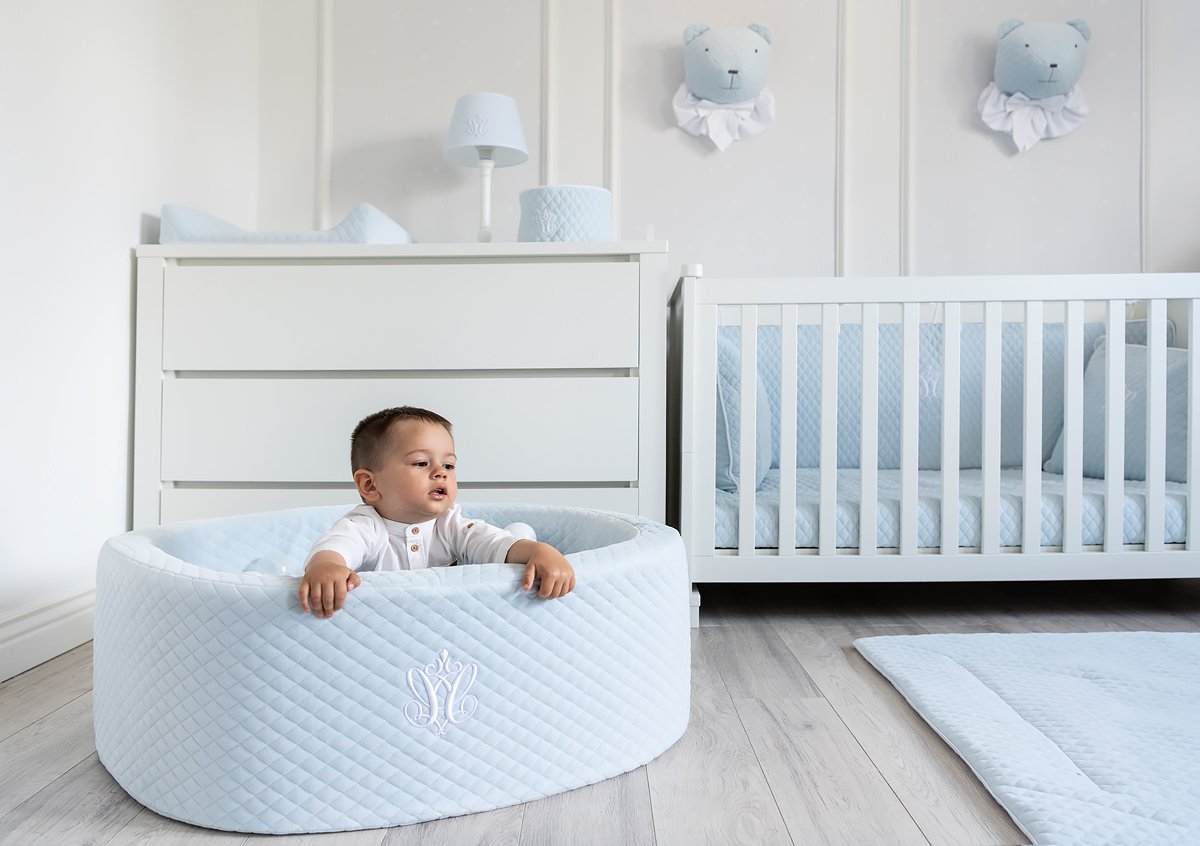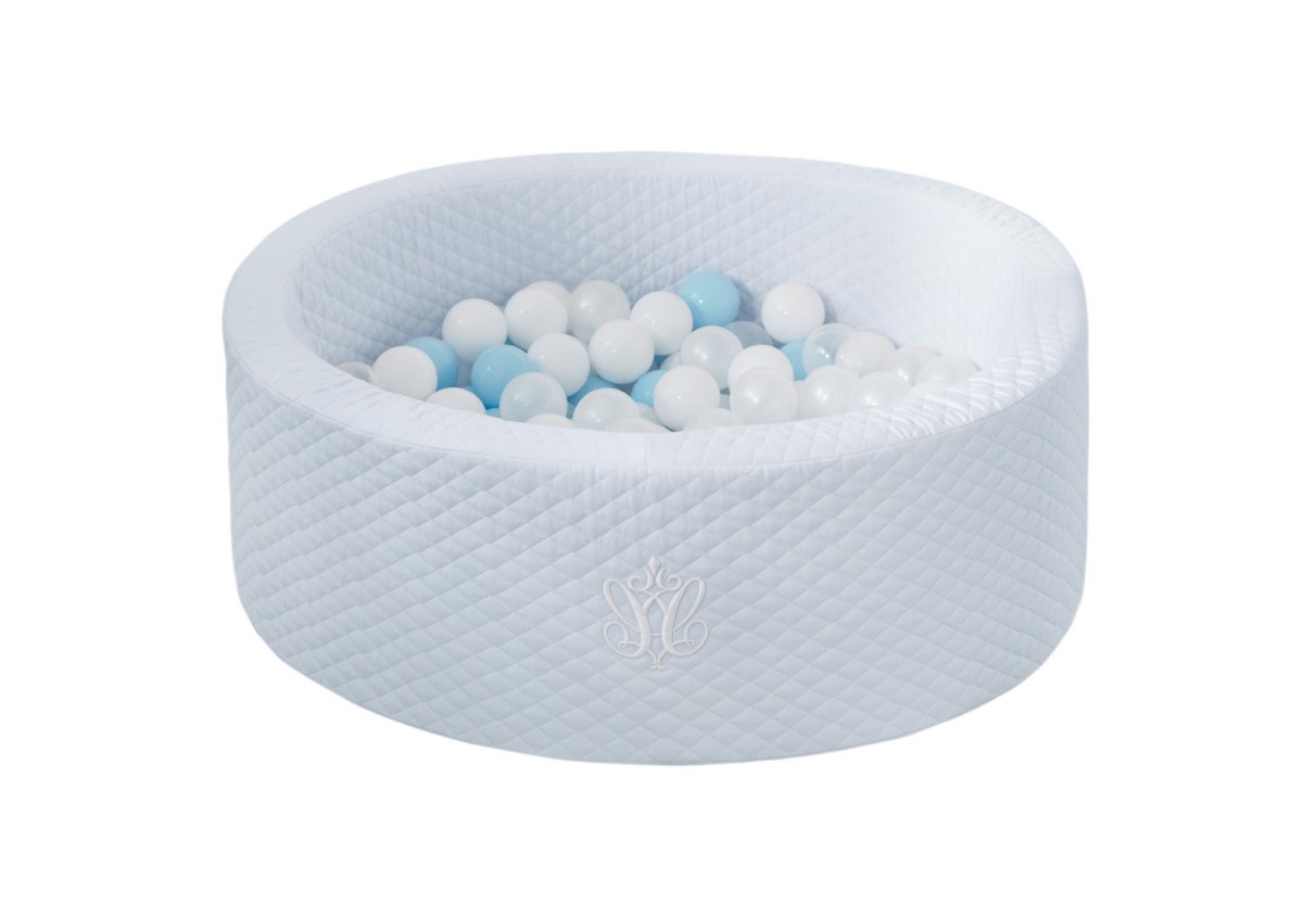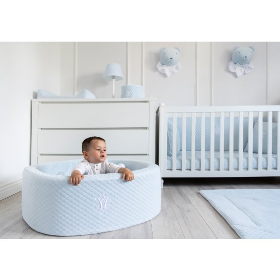 Very popular product - a dry pool with balls. It provides great fun while supporting the child's sensory and motor development. At first it can be used as a playpen, then as a ball pool. The blue quilted cover is fastened with a zipper, which allows you to easily remove it for washing, as well as remove the inner sponge. The cover is decorated with Caramella white emblem.