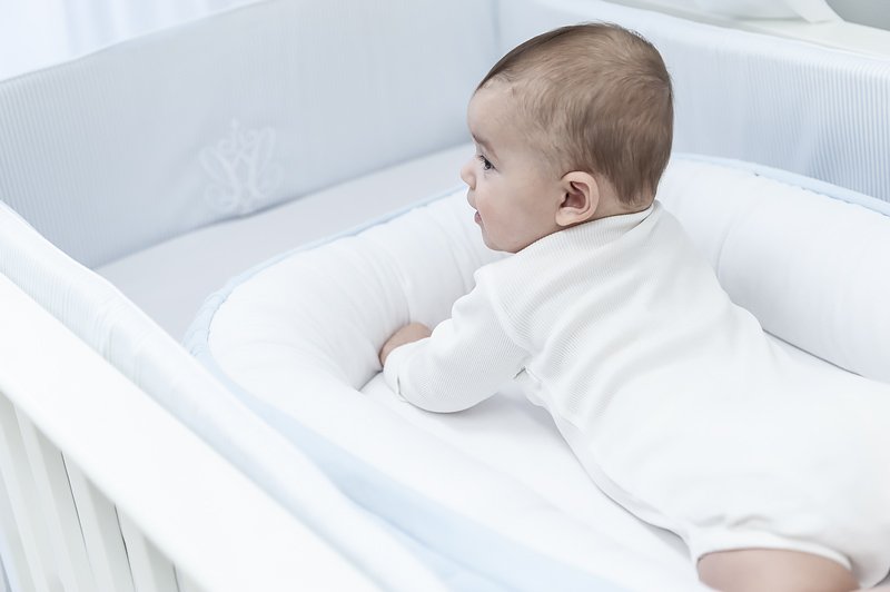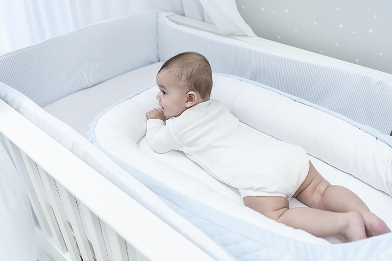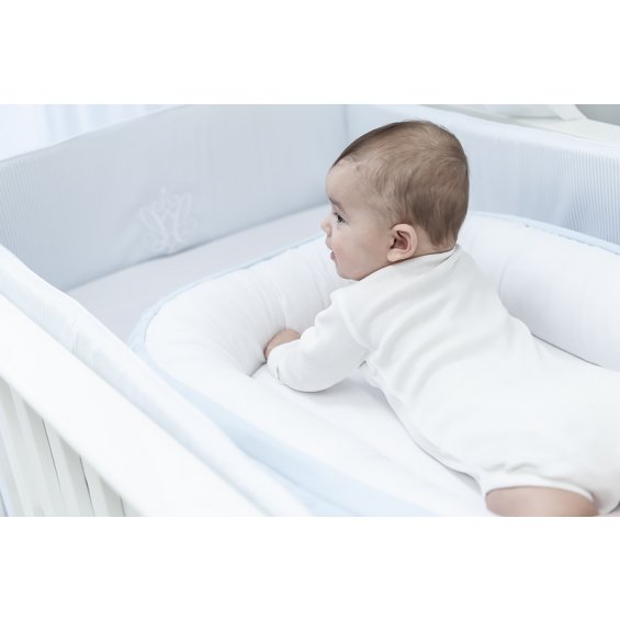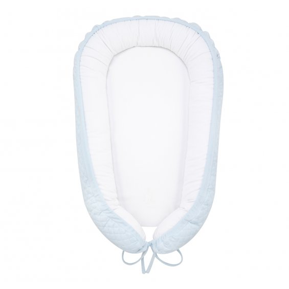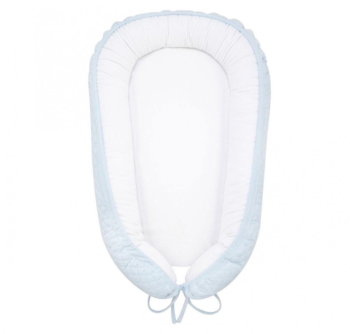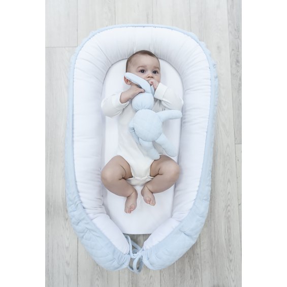 An elegant and functional baby nest. It consists of cover and a removable insert. The cover is made of blue quilted colored velour pleasant to the touch. It may be used in parent's bed, on the floor or on the couch. Perfect for children aged up to 6 month.