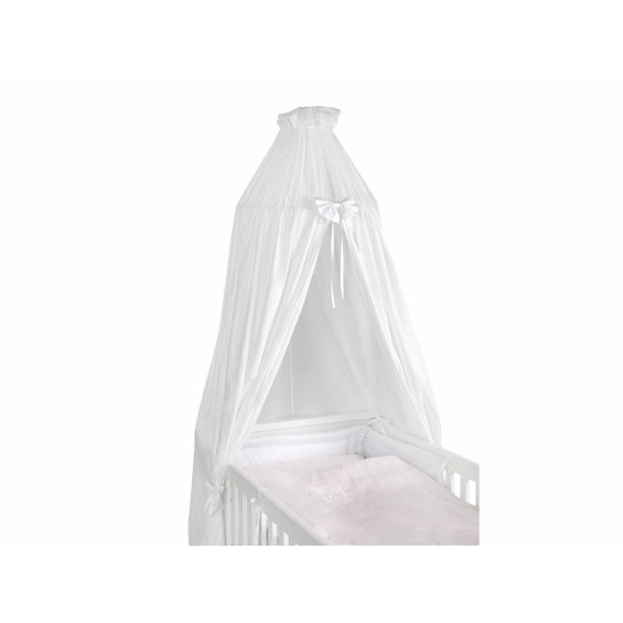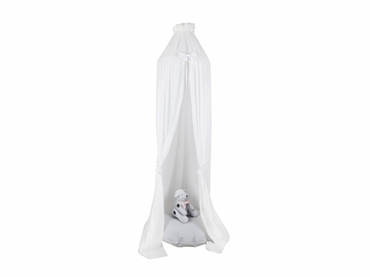 Our baldachin-teepee is made of execptionally soft white textile decorated with bows. Thanks to its functionality it can be used for many years. First, it can be used as a cot baldachin to create a unique atmosphere in your baby's room. Then, it can be changed into a stylish teepee - a comfortable place perfect to play and spending time together. Our baldachin-teepee needs much less place for installation than a traditional teepee, because it can be hang by a special hook everywhere you want.