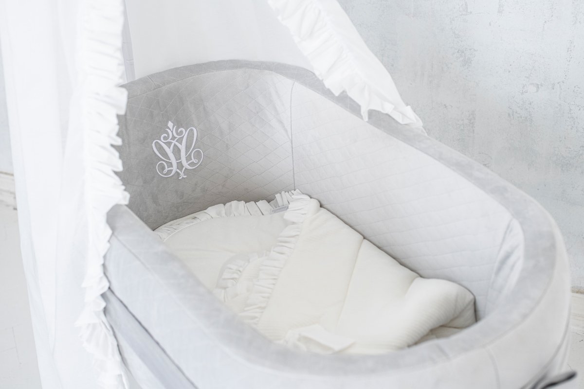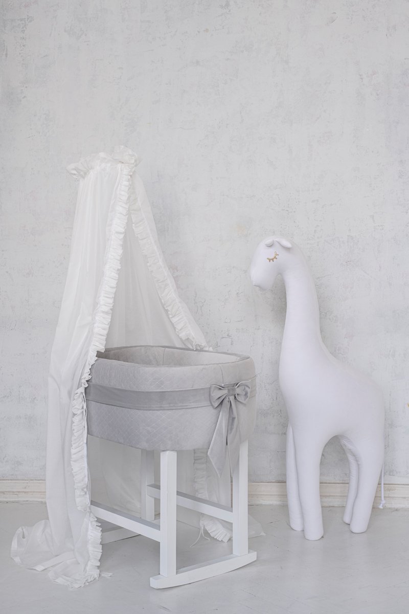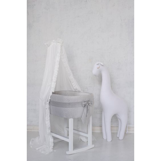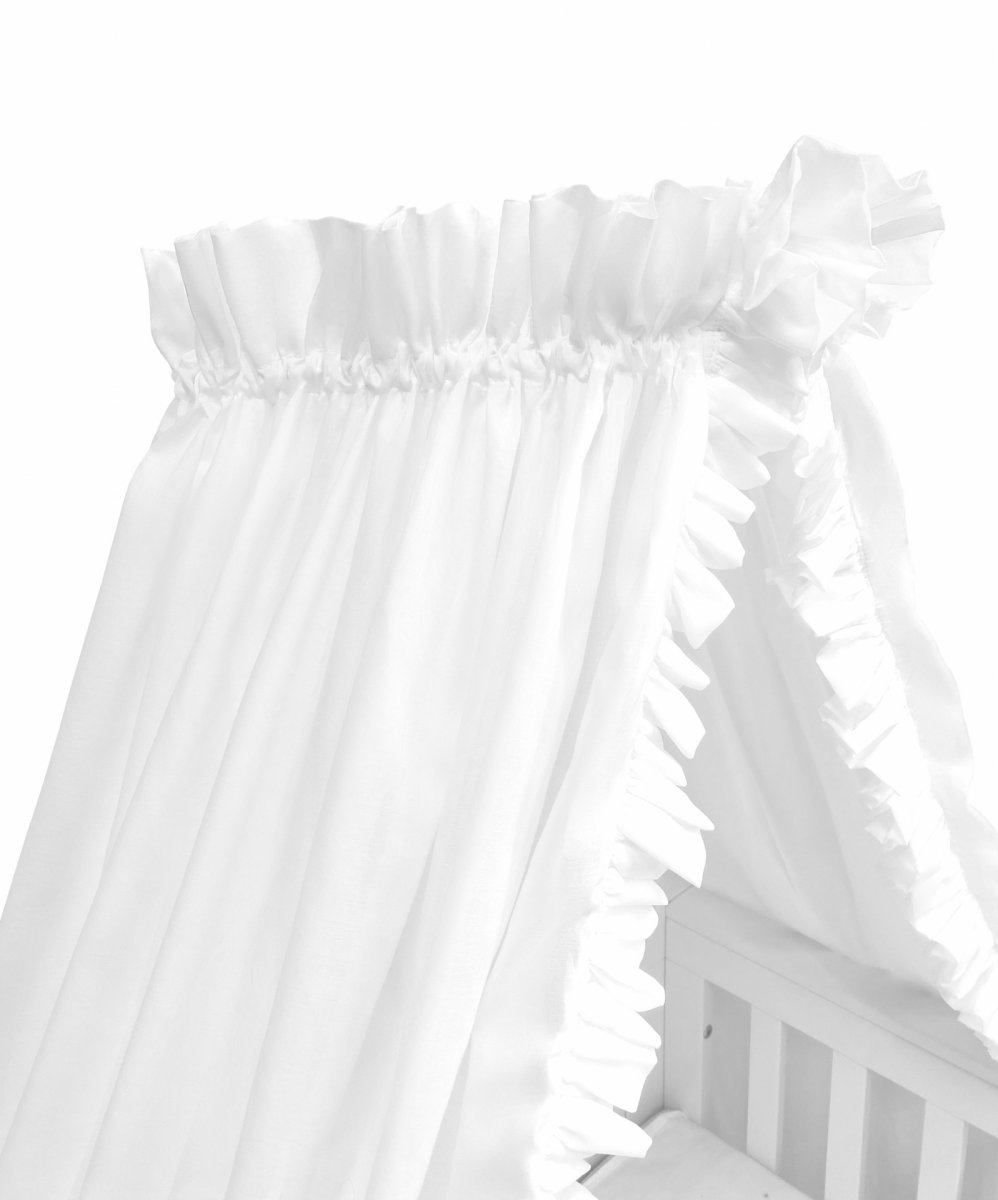 Beautiful standing canopy to the children's room. Made of white cotton voile and decorated with a flounce. The canopy is an elegant accessory that will make your child's cot more cozy and the baby will feel safer.