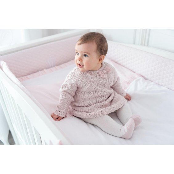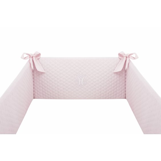 Thanks to the filling of a special sponge, it’s inflexible and adheres well to the cot bed. Short, wide straps make it easy to mount it to the rungs. The quilted covering is removable for washing and zippered. The inner sponge is also washable in the washing machine. The bumper is decorated with Caramella white emblem.