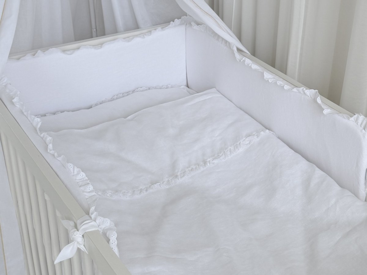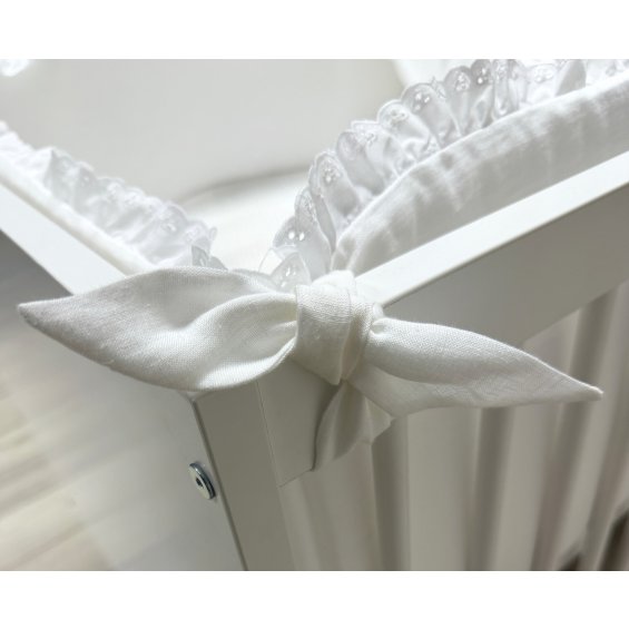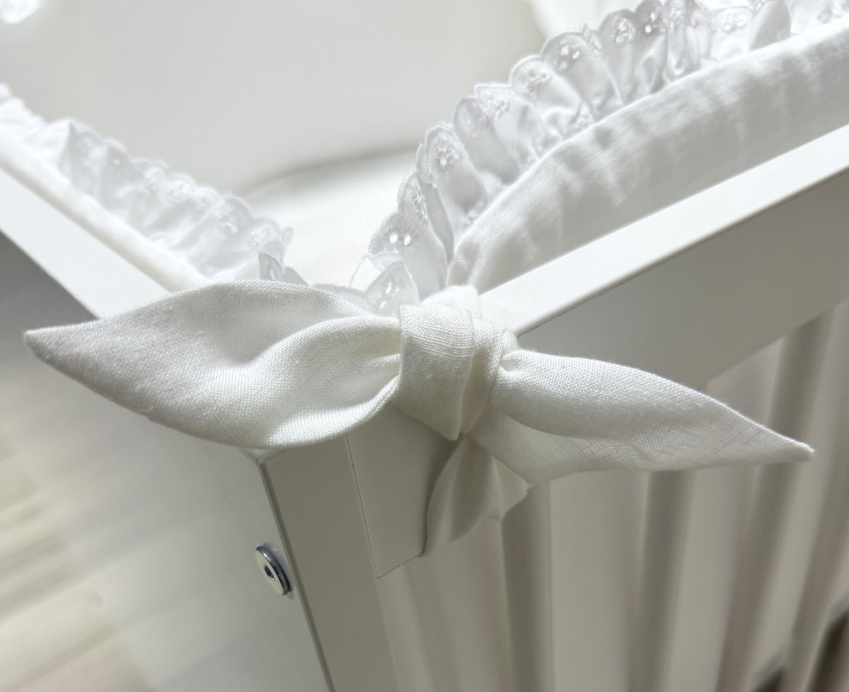Linen bumper is an elegant and functional protection for your baby’s crib. Made from natural, breathable linen, it provides comfort and safety for your little one during sleep. A delicate ruffle and careful finishing give it a light, romantic character, combining practicality with timeless aesthetics. The perfect choice for parents who value style and quality.