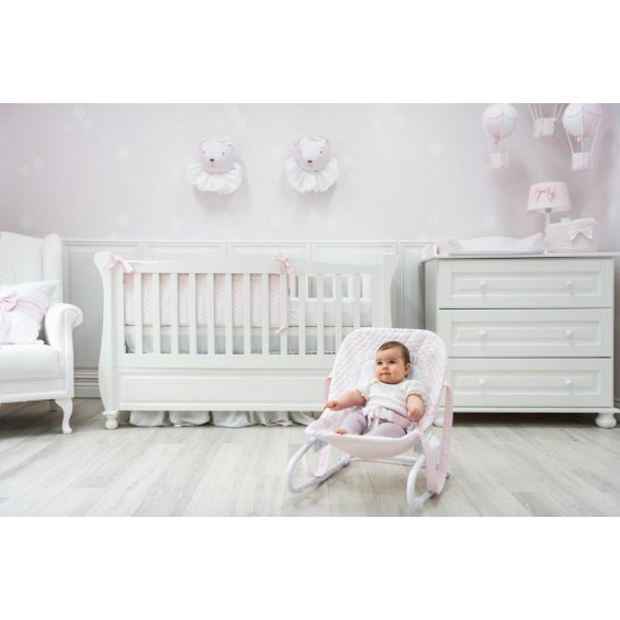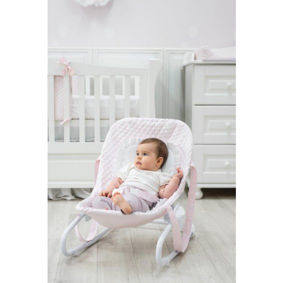 Elegant bouncer with a fabric seat from the Powder Pink collection. The bouncer is a great place to rest your baby during the day and a great solution for those children who are not sitting alone yet. Made of the highest quality materials. Equipped with seat belts and removable overlay with frill.