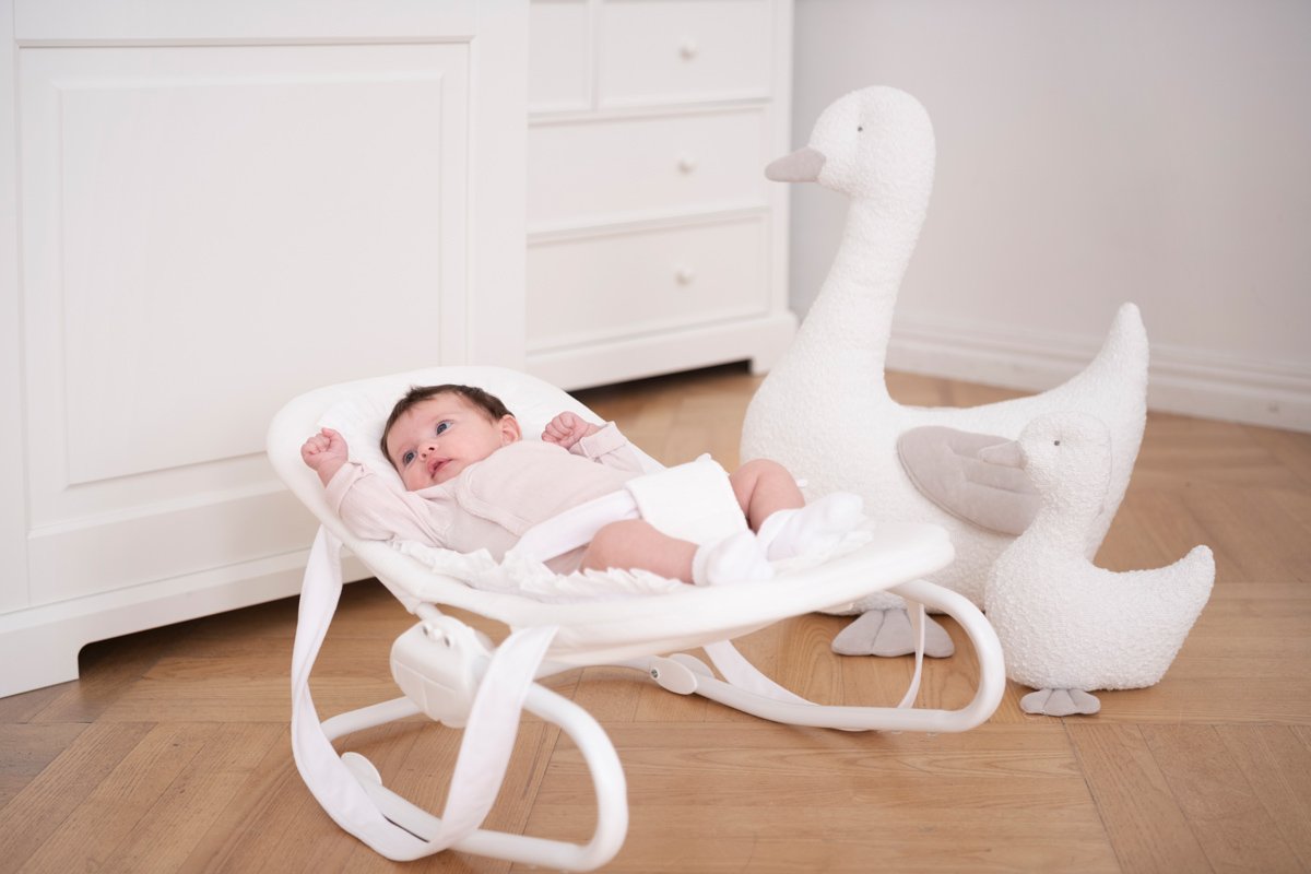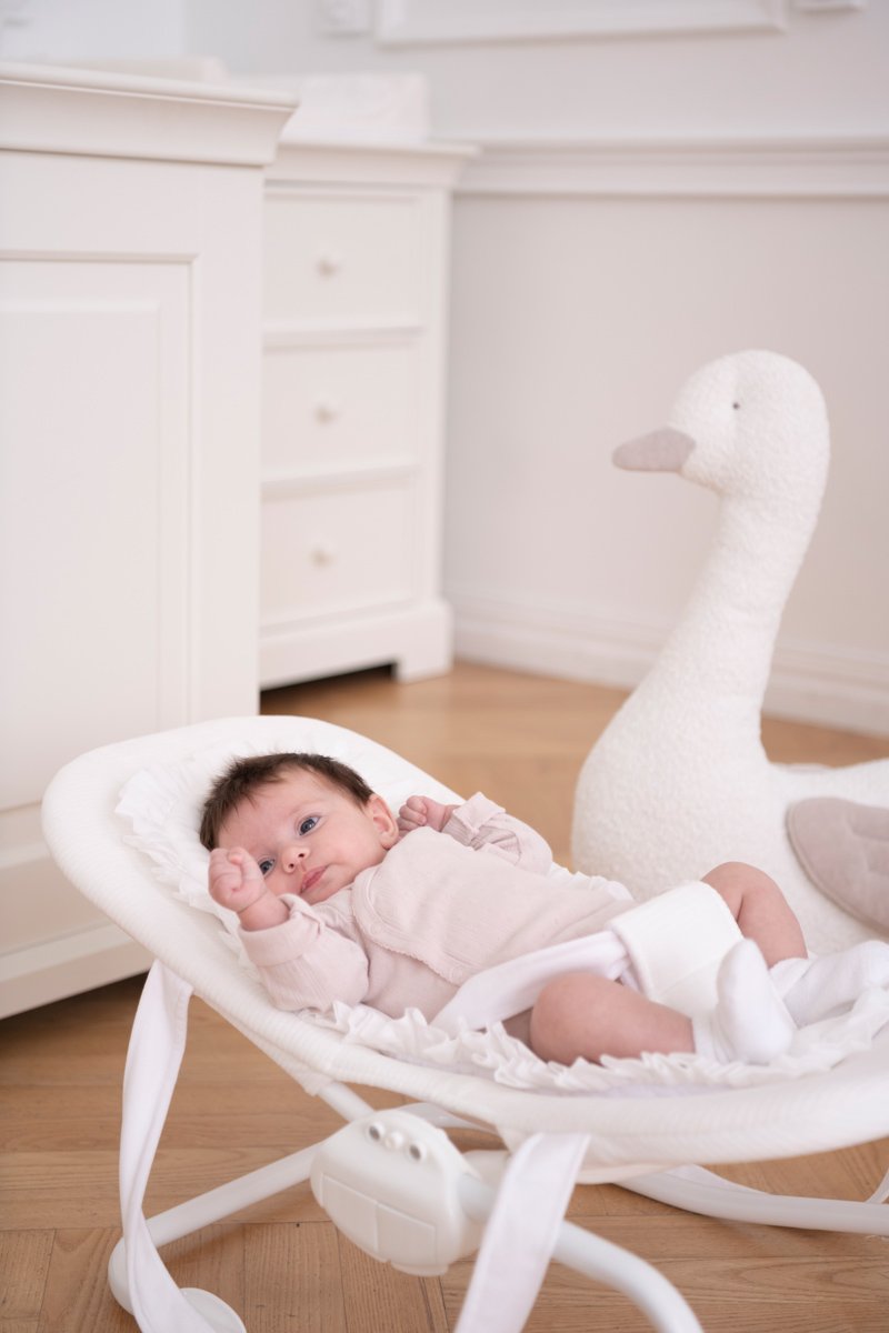 Elegant bouncer with a fabric seat from the Ivory Mist collection. The bouncer is a great place to rest your baby during the day and a great solution for those children who are not sitting alone yet. Made of the highest quality materials. Equipped with seat belts and removable overlay.