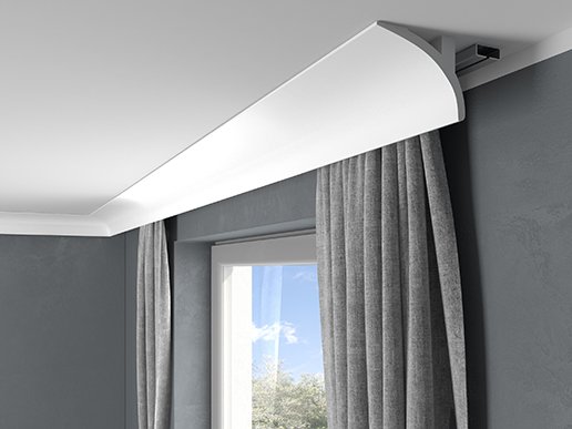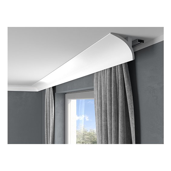 An elegant moulding. It is made of hard, inflexible fabric resistan to damages. The moulding is covered with primer ready to apply other paints eg. acrylic. It is light, resistant to water and moisture, may be cleaned, non-inflammable and non-toxic.